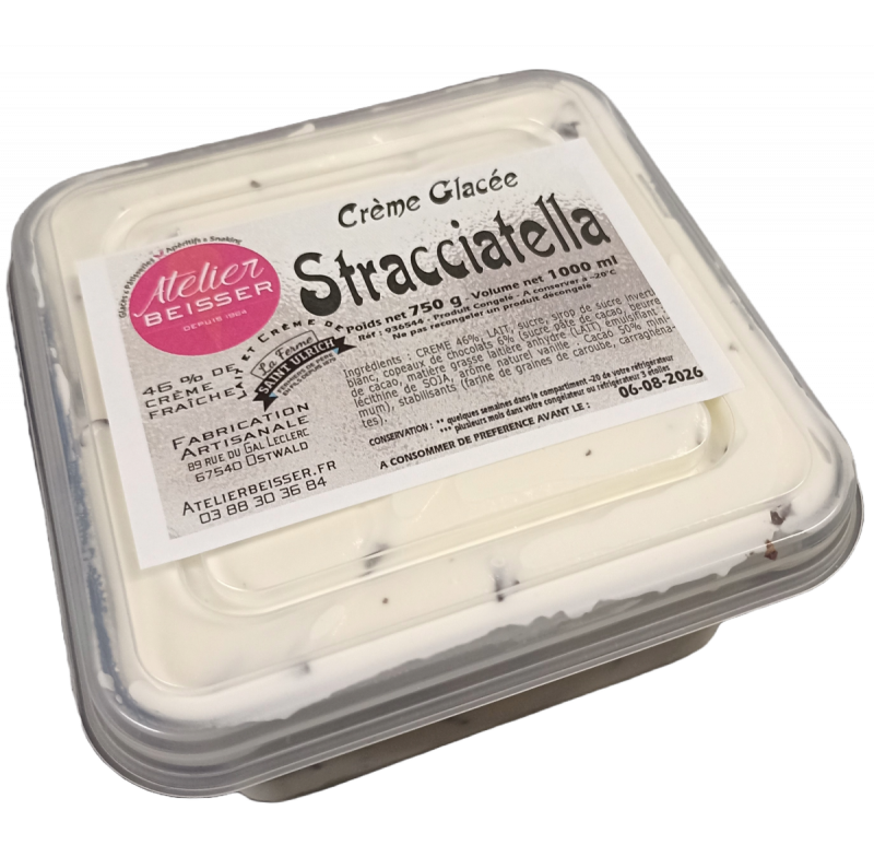 Ingrédients : CREME 46%, LAIT, sucre, sirop de sucre inverti blanc, copeaux de chocolats 6% (sucre pâte de cacao, beurre de cacao, matière grasse laitière anhydre (LAIT) émulsifiant : lécithine de SOJA, arôme naturel vanille . Cacao 50% minimum), stabilisants (farine de graines de caroube, carraghénates).