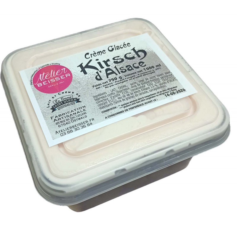 Ingrédients : LAIT, CREME, sucre, sirop de sucre inverti blanc, bigarreaux confits (bigarreaux, sirop de glucose-fructose, saccharose; correcteur d'acidité E330, conservateur E202 E220 (SULFITES), colorant E127), eau de vie de kirsch d'Alsace 2.6 %, jaunes d’OEUFS, stabilisants (farine de graines de caroube, carraghénates).