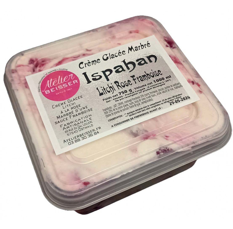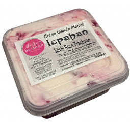 Ingrédients : LAIT, CREME, marbrage Framboise 20% (sucre, framboise, glucose, gomme de xanthane), purée de litchi 19% de la crème glacée, sucre, sirop de sucre inverti blanc, arôme naturel rose, stabilisants (farine de graines de caroube, farine de guar, carraghénates).
