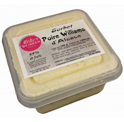 Ingrédients : purée de Poire 55%, eau, sucre, sirop de sucre inverti blanc, stabilisants (farine de graines de caroube, farine de guar), jus de citron.