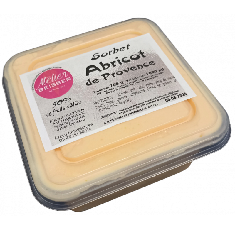 Ingrédients : Abricots de Provence 50%, eau, sucre, sirop de sucre inverti blanc, glucose, stabilisants (farine de graines de caroube, farine de guar).