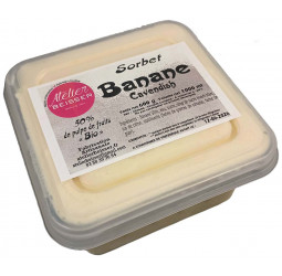 Ingrédients : Banane 50%, eau, sucre, sirop de sucre inverti blanc, jus de citron, stabilisants (farine de graines de caroube, farine de guar).