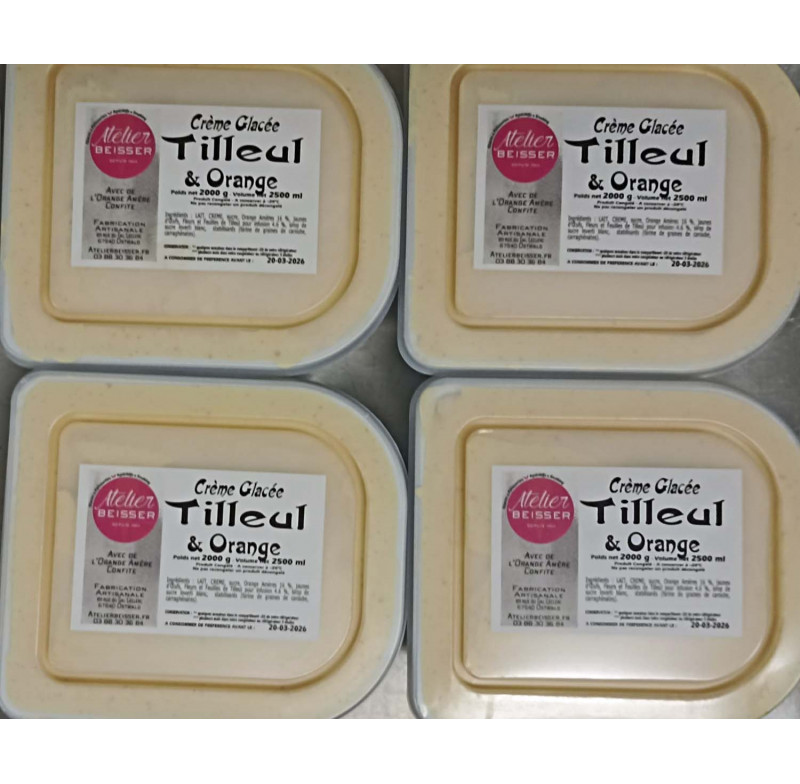 Ingrédients : LAIT, CREME, sucre, Orange Amères 16 %, jaunes d’Œufs, Fleurs et Feuilles de Tilleul pour infusion 4.6 %, sirop de sucre inverti blanc, stabilisants (farine de graines de caroube, carraghénates).