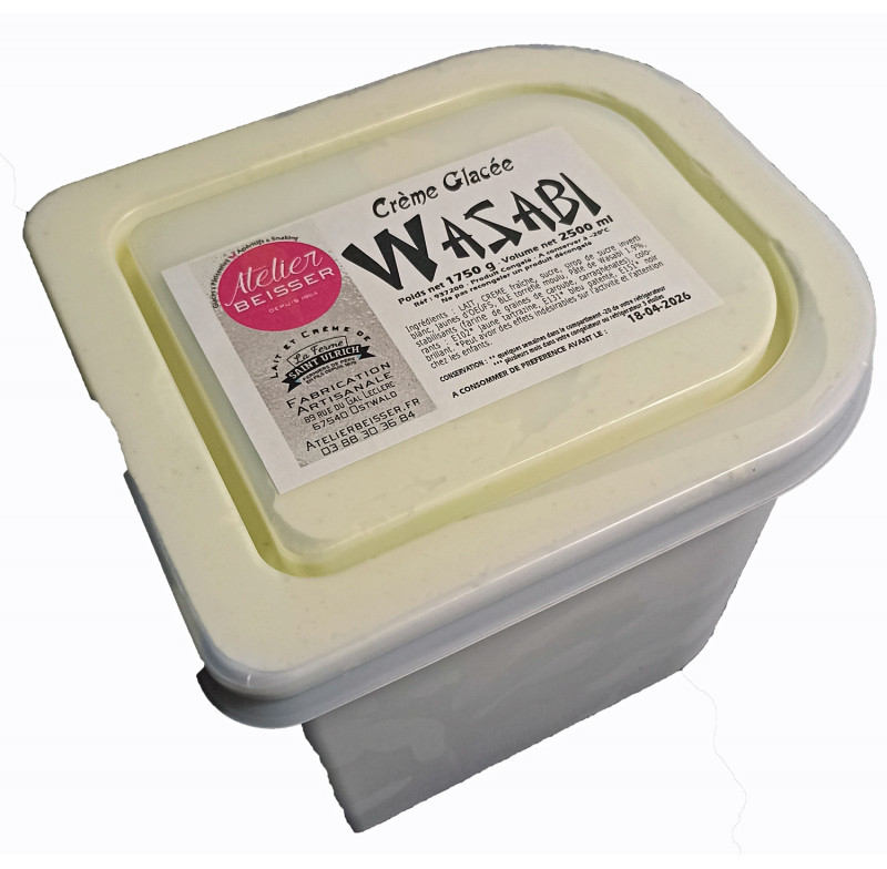 Ingrédients : LAIT, CREME fraîche, sucre, sirop de sucre inverti blanc, jaunes d’OEUFS, BLE torréfié moulu, Pâte de Wasabi 1.9%, stabilisants (farine de graines de caroube, carraghénates).