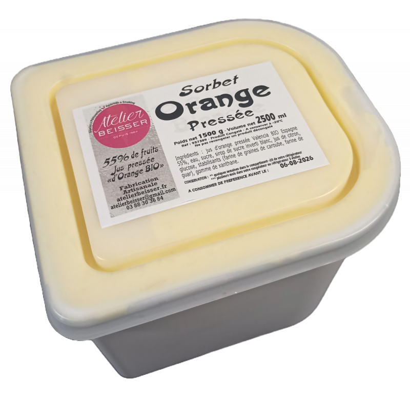 Sorbet réalisé avec du jus d'Orange Bio de Sicile pressée par nos soins