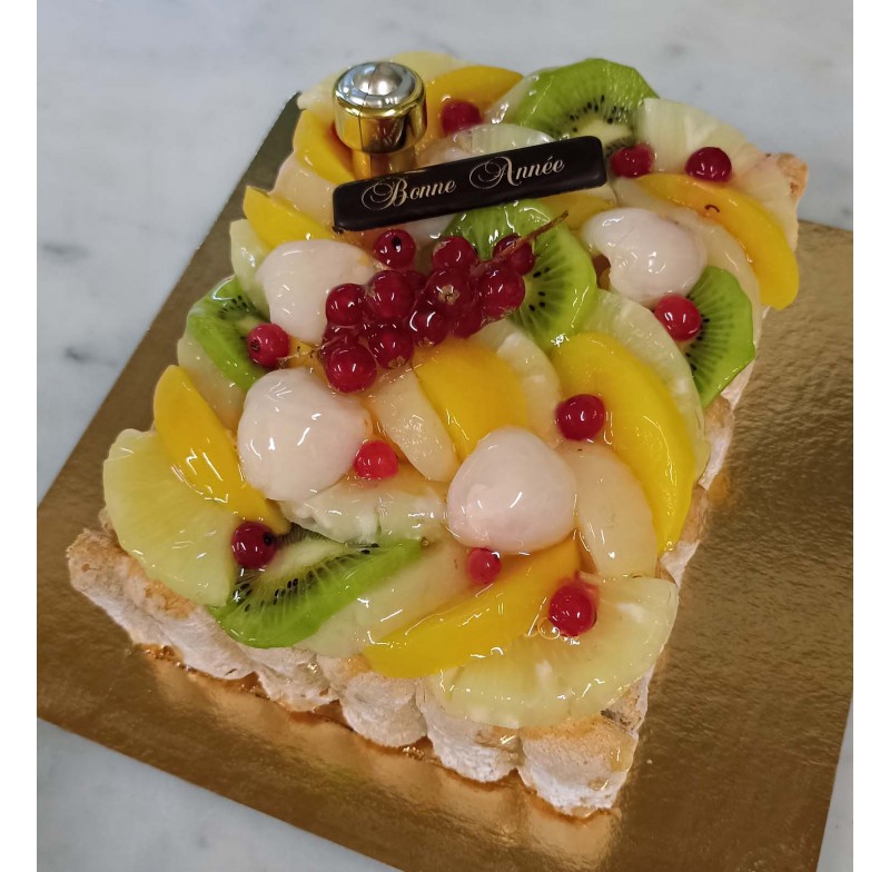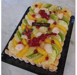 Biscuits garni d'une mousse diplomate et de fruits variés
