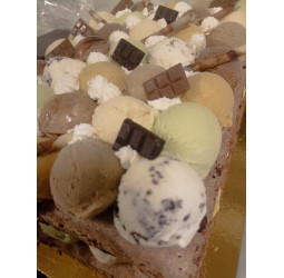 Bse de Macarons chocolat avec des boules de crème glacée de divers parfums
