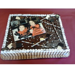 Génoise nature, sirop nature sans alcool, garnie de deux bavaroises au choix : Chocolat Noir et Lait ou Chocolat Noir et Blanc ou Chocolat Lait et Blanc. Décor de glaçage tendre au chocolat.